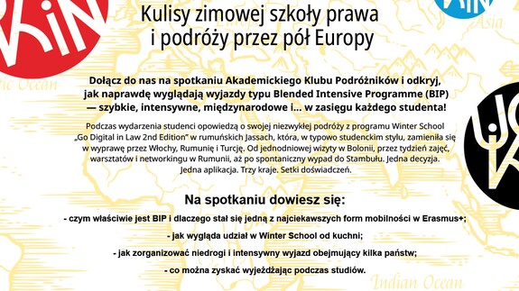 Podczas wydarzenia studenci opowiedzą o swojej niezwykłej podróży z programu Winter School „Go Digital in Law 2nd Edition”, która, w typowo studenckim stylu, zamieniła się w wyprawę przez Włochy, Rumunię i Turcję.