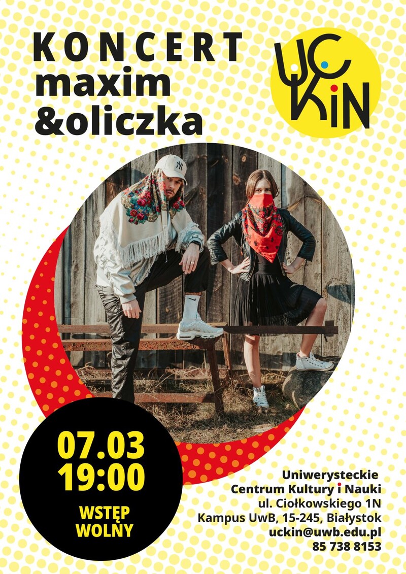 🕖 19:00 – Premierowy koncert płyty „TAM” duetu Maxim i Oliczka 🎤🎧 Ten podlaski duet to fascynujące zderzenie miejskiej energii hip-hopu z emocjonalnością podlaskiego białego śpiewu. Ekspresyjny rap łączy się tu z pieśniami zbieranymi od wiejskich śpiewaczek, wykonywanymi w autentycznej gwarze podlaskiej. Podczas koncertu po raz pierwszy na żywo wybrzmi cały materiał z płyty „Tam” – premierowa odsłona albumu na żywo, która pokazuje, jak podlaskie dziedzictwo można opowiedzieć na nowo.